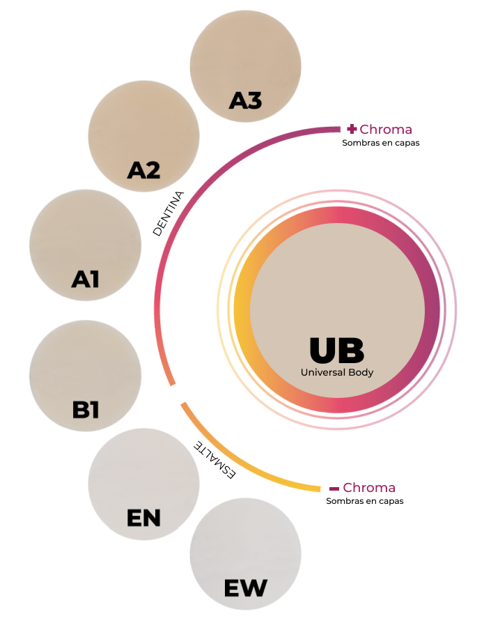 "TRANSCEND UB, conforme vamos aumentando el espesor de la capa vamos obteniendo mayor opacidad de una manera muy controlada lo cual permite cubrir sustratos oscuros profundos en restauraciones en el sector posterior o impedir el pasaje de luz para no obtener restauraciones grisáceas en el sector anterior, lo que permite usarla de manera segura para cerrar péqueños diastemas, cavidades clase III , V, recontornear bordes incisales todo esto adoptando una naturalidad increíble Gracias a su tecnología RESIN PARTICULE MATCH"
